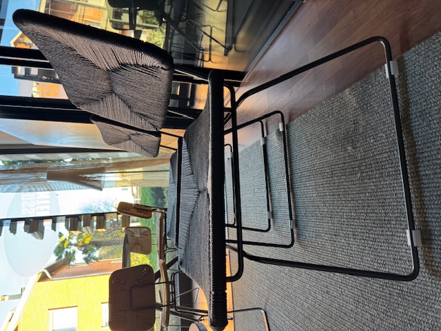 seduta e schienale sono caratterizzati da un fine intreccio in cordoncino di carta o paglia di fiume, una lavorazione all’apparenza semplice e tuttavia complessa, ancora oggi interamente realizzata a mano.