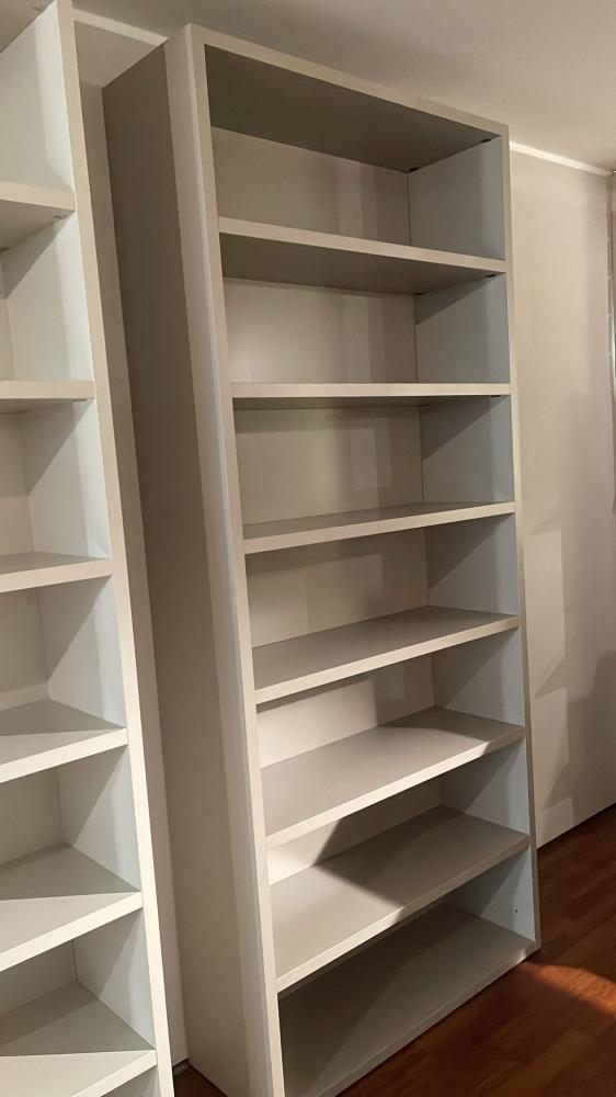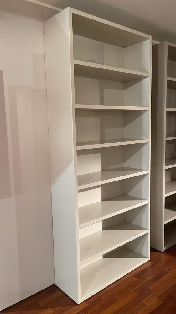 La struttura presenta montanti a tutta altezza e una sequenza di ripiani orizzontali a passo regolare, studiati per garantire massima capacità contenitiva e un’estetica equilibrata.