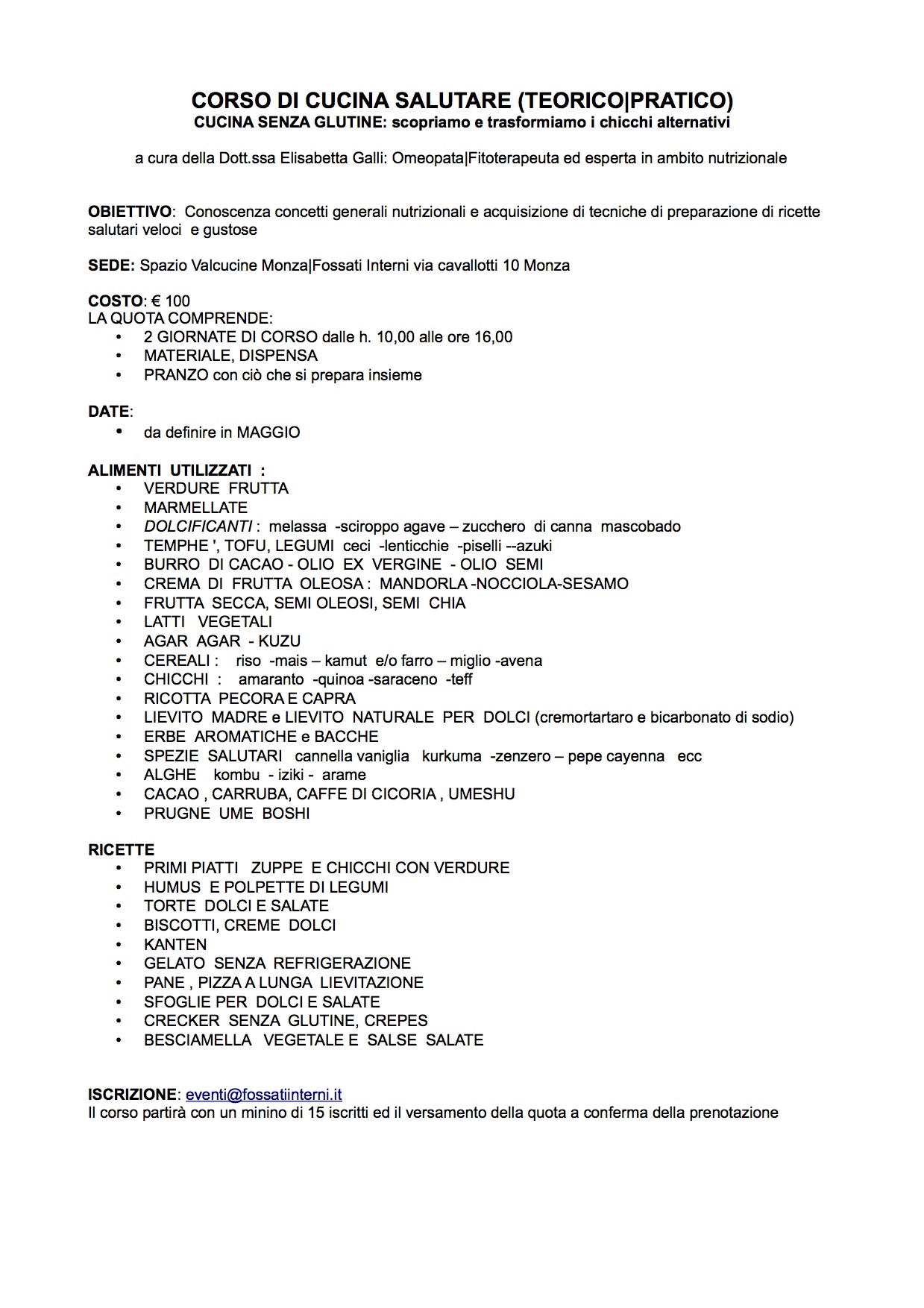 Corso di cucina “naturale”